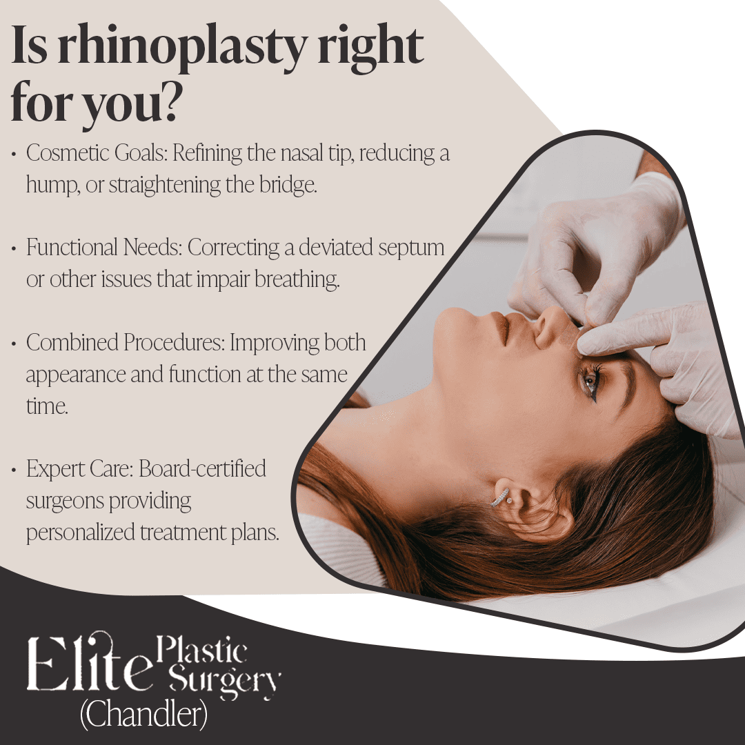 Elite Plastic Surgery offers advanced expertise in both cosmetic and functional rhinoplasty surgery in Chandler. Patients seeking improved appearance, better breathing, or both can schedule a consultation today by contacting them at (480) 291-6895 or contact@epsaz.com.