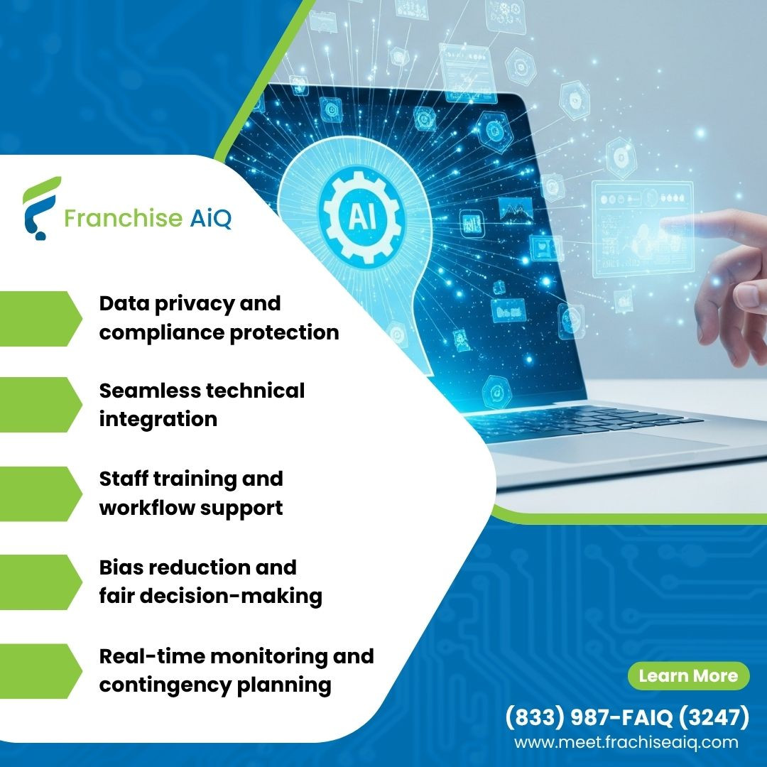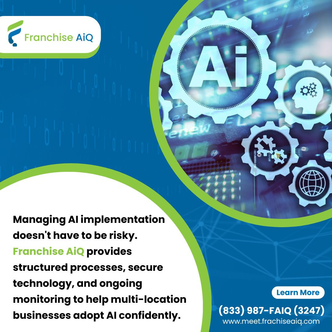 Franchises seeking guidance on franchise AI implementation risks, AI risk management in franchises, or AI risk mitigation can contact them at info@franchiseaiq.com or call (833) 987-3247 to learn how these solutions improve operations, secure data, and enhance lead engagement across all locations.